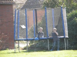 Der Spielplatz ist mit einer Schaukel, einer Rutsche, einem Schaukelpferd, einer Sandkiste mit echtem Seesand und einem Trampolin ausgestattet . Außerdem gibt es Dinocars zur freien Nutzung.